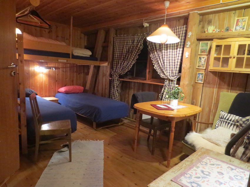 Utsikt over gårdstun. 3-5 soveplasser, bl.a. i køyer.