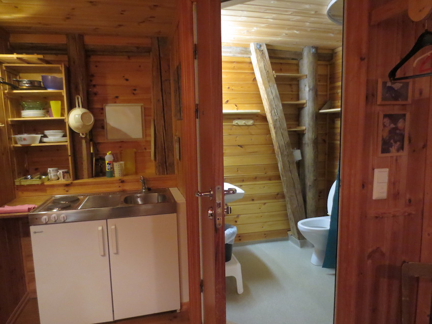 * 1.etg. Soverom / stue med 3-5 soveplasser, bad, stort kjøkken i rom ved siden av. (Se bildene