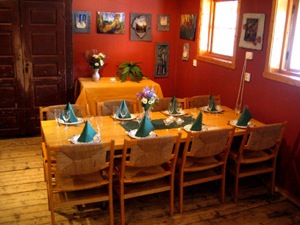 I den gamle låven er det i underetasjen et amfi i den gamle høyløa. Og det er en stue i det gamle fjøset. Fjøsstua er pusset opp med gjenbruksmaterialer fra låvens gamle ytterkledning og takplank. Hyllene til bøker er også laget av gammel takplank. Begge rom med plass til opptil 70 stk på kurs.